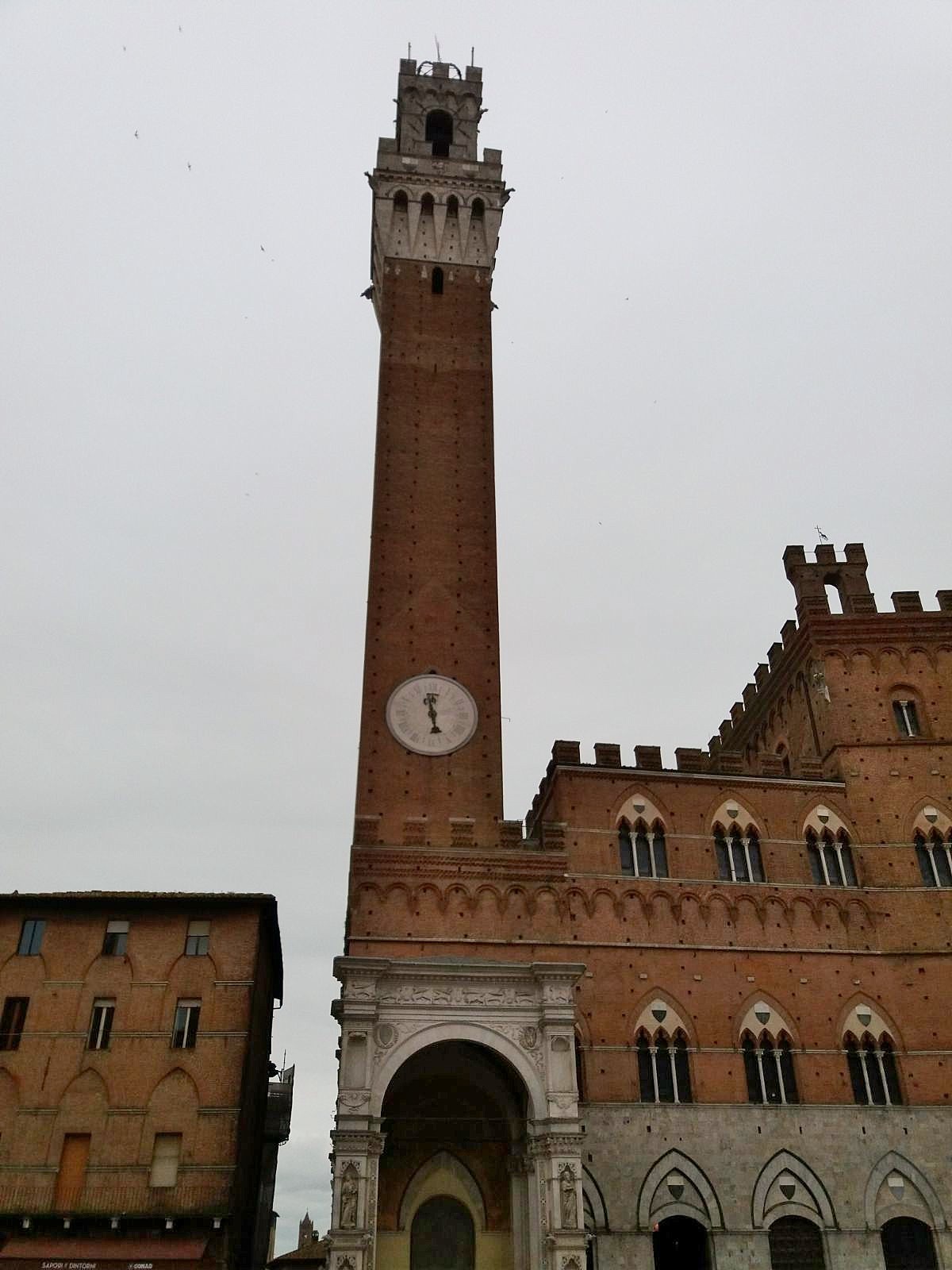 La famosa Torre del Mangia símbolo indiscutible de la ciudad y el Palacio Público están situados a un lado de la Plaza del Campo. La torre, construida en el 1848 y alta 102 m, ofrece una magnifica vista de la ciudad y el campo que la rodea. Palacio Público, construido entre el 1297 y el 1342 es un ejemplo de arquitectura clásica gótica en ToscanaPalazzo Pubblico de Siena, con su fachada curva y su famosa Torre del Mangia.